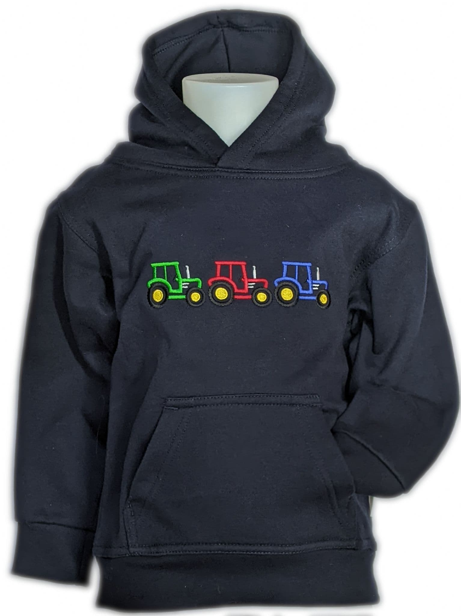 Our popular kids hoodies now come with the 3 embroidered tractor design.