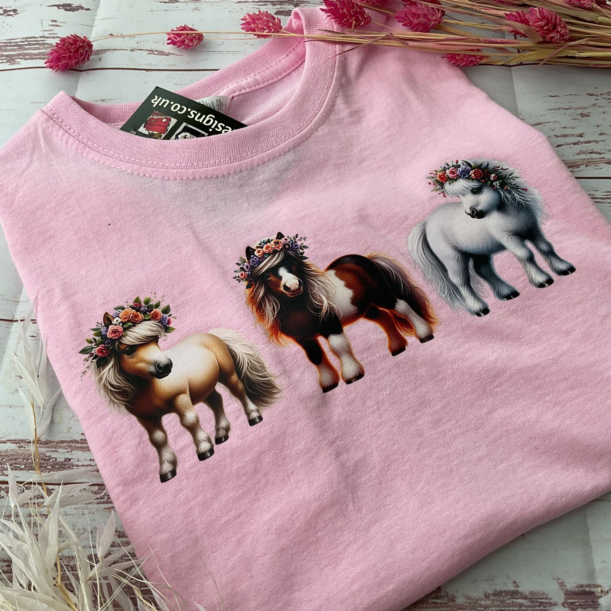 Pony T-shirt 3 flower ponies pale pink